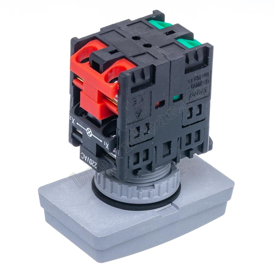 Кнопка пуск стоп с подсветкой 220В для пуска и останова технологического оборудования в электрических цепях. Кнопка состоит из двух частей: быстросъемной прямоугольной головки и контактного модуля. Конструкция кнопок позволяет при необходимости монтировать на них дополнительные блоки контактов.