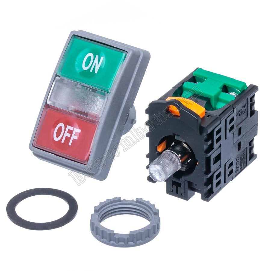 Кнопка управления пуск-стоп, с подсветкой, без фиксации, НЗ/НР, зеленая/красная TN2IT2WN-1AB купить в интернет-магазине «Бурый Медведь»