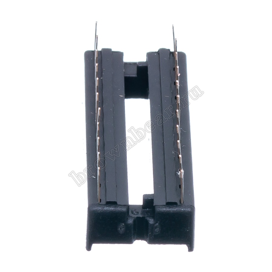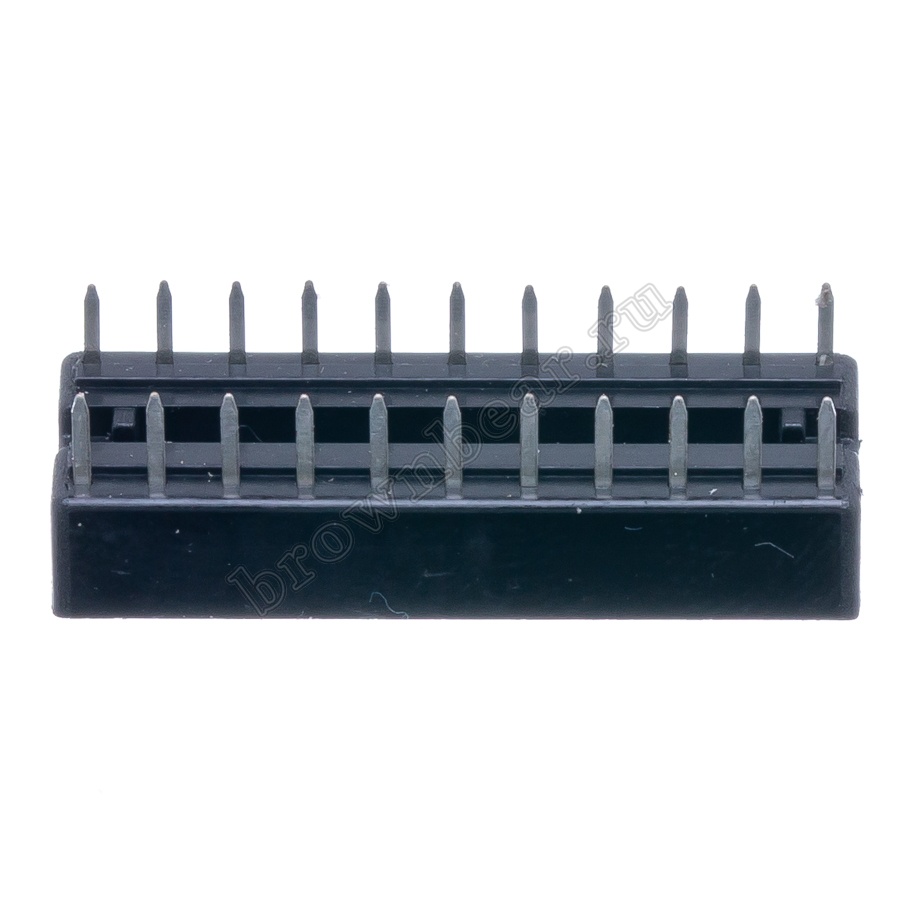 Панелька для микросхемы – это разъём (гнездо), в который устанавливается микросхема в стандартном корпусе. Выводы панельки припаиваются к плате, а к контактам панельки происходит подключение контактов микросхемы. Применение панелей для микросхем облегчает монтаж и демонтаж микросхем при производстве и обслуживании печатных плат.
