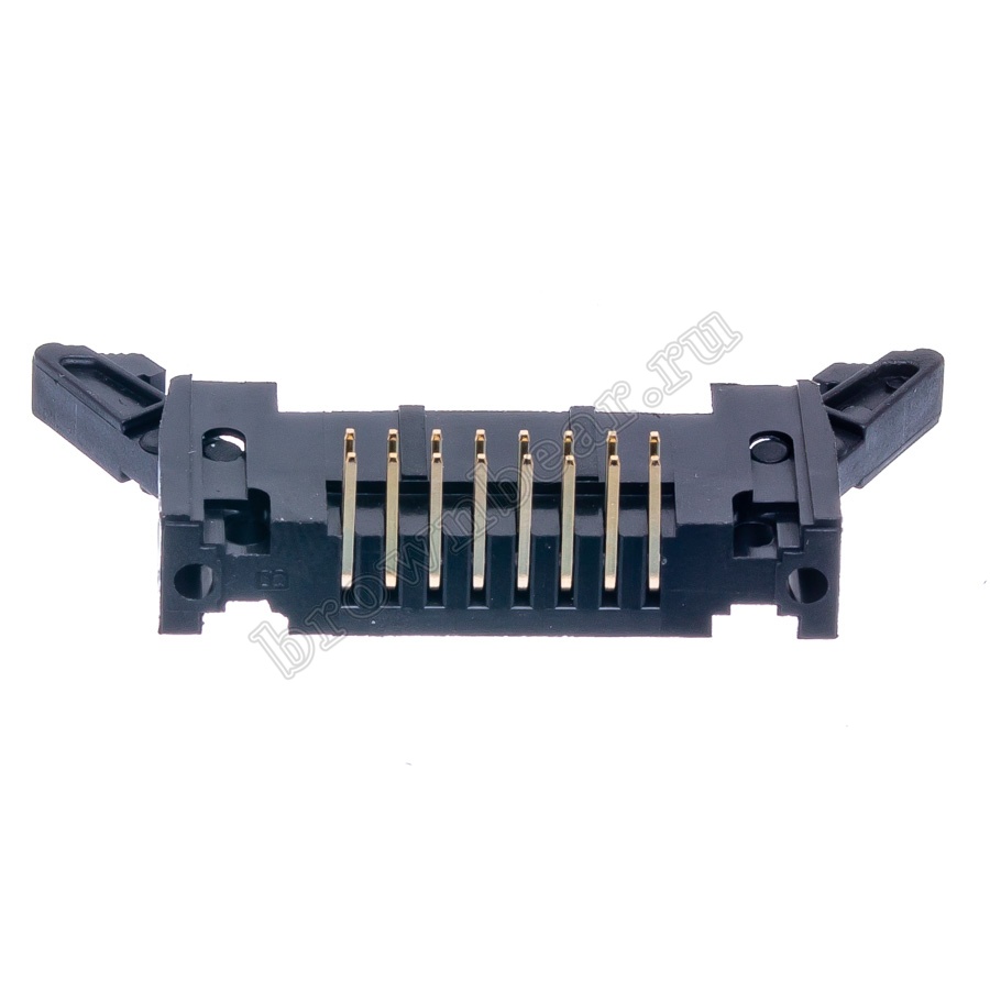 Ответная часть к разъёму IDC, штекер 16 контактов с шагом 2.54 мм, горизонтально устанавливается на плату, имеет боковые защёлки, позволяющие зафиксировать его с разъёмом IDC.