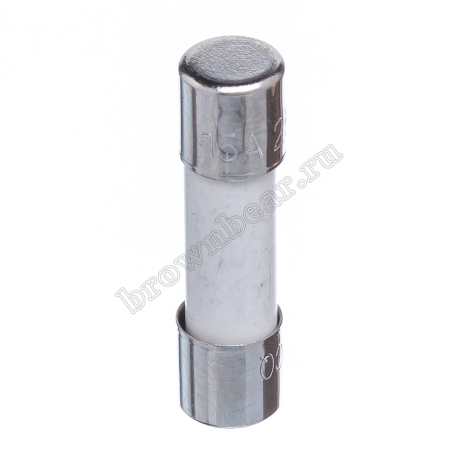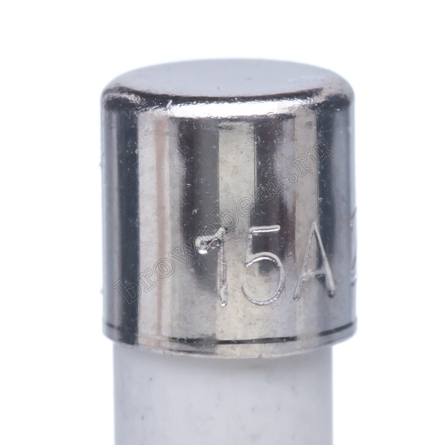 Цилиндрический предохранитель с габаритными размерами 5х20 мм, в керамическом корпусе, с рабочим током 15А, с быстрым временем срабатывания.