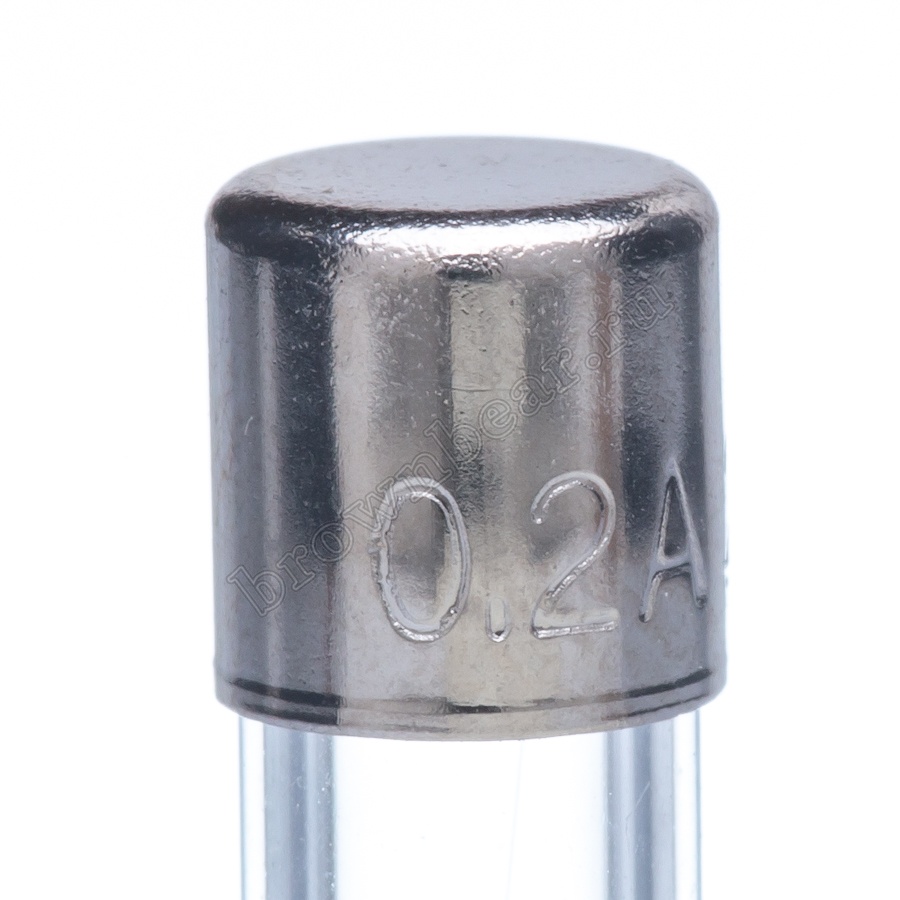 Цилиндрический предохранитель с габаритными размерами 5х20 мм, в стеклянном корпусе, с рабочим током 200мА, с быстрым временем срабатывания.