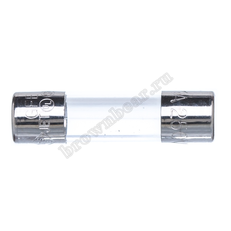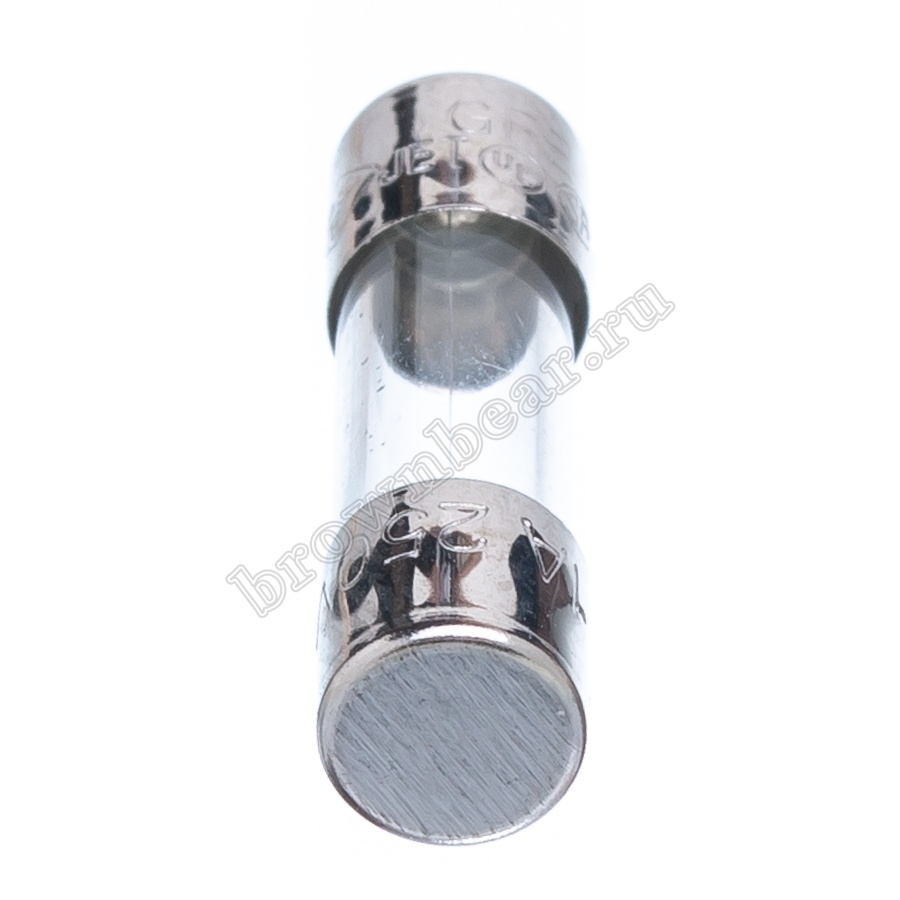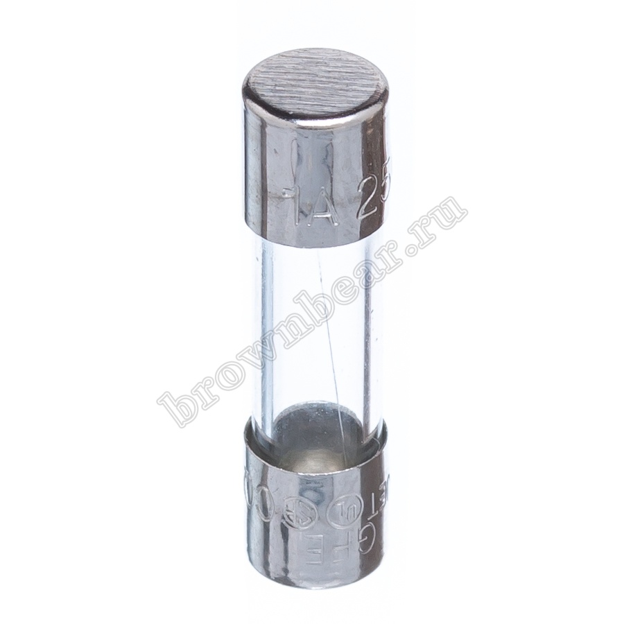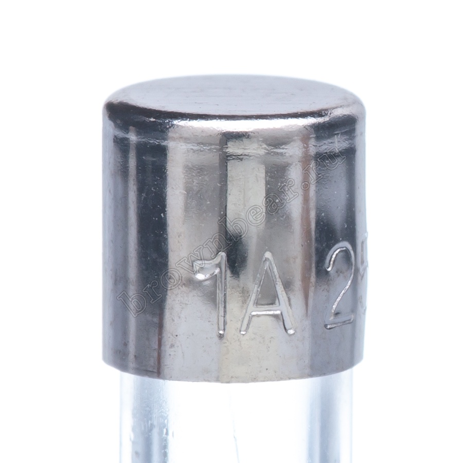Цилиндрический предохранитель с габаритными размерами 5х20 мм, в стеклянном корпусе, с рабочим током 1А, с быстрым временем срабатывания.