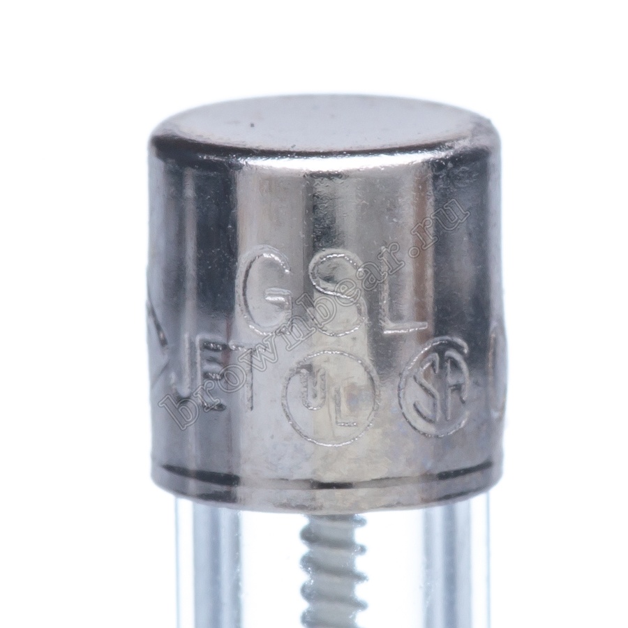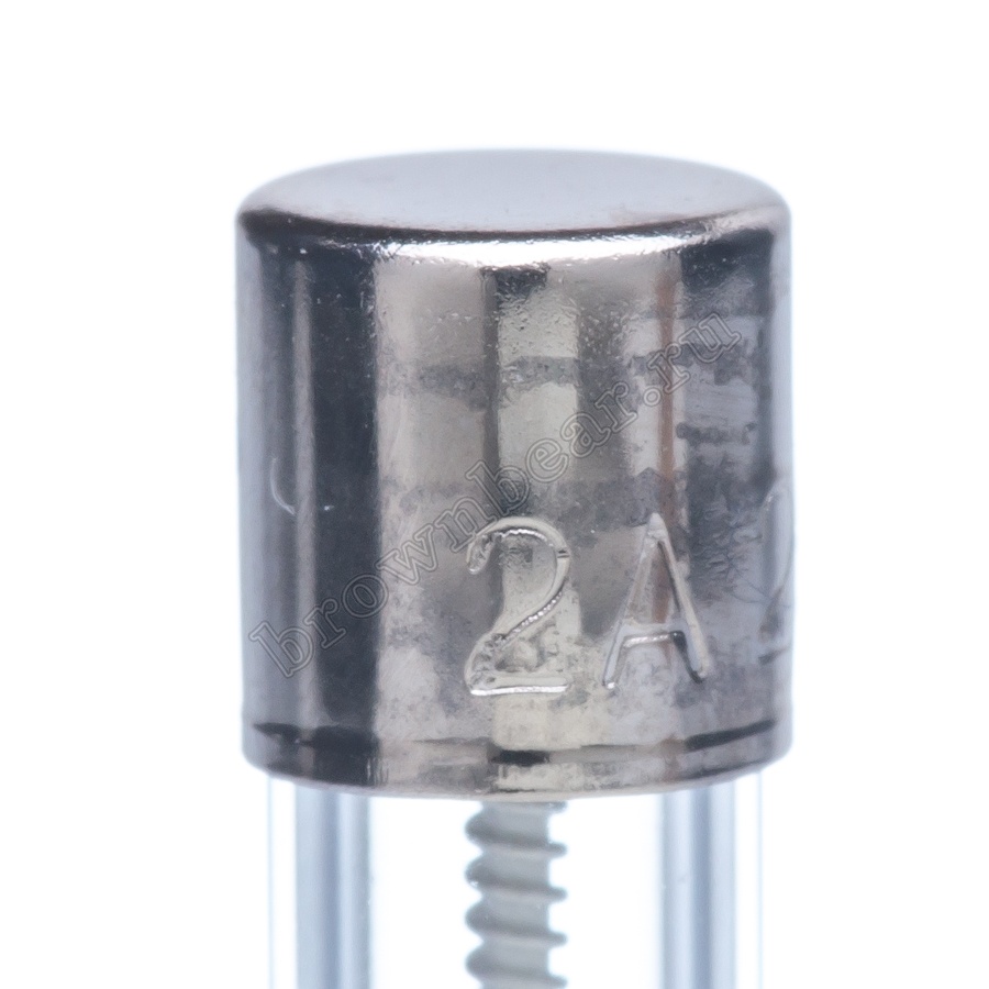 Цилиндрический предохранитель с габаритными размерами 5х20 мм, в стеклянном корпусе, с рабочим током 2А, с задержкой времени срабатывания.
