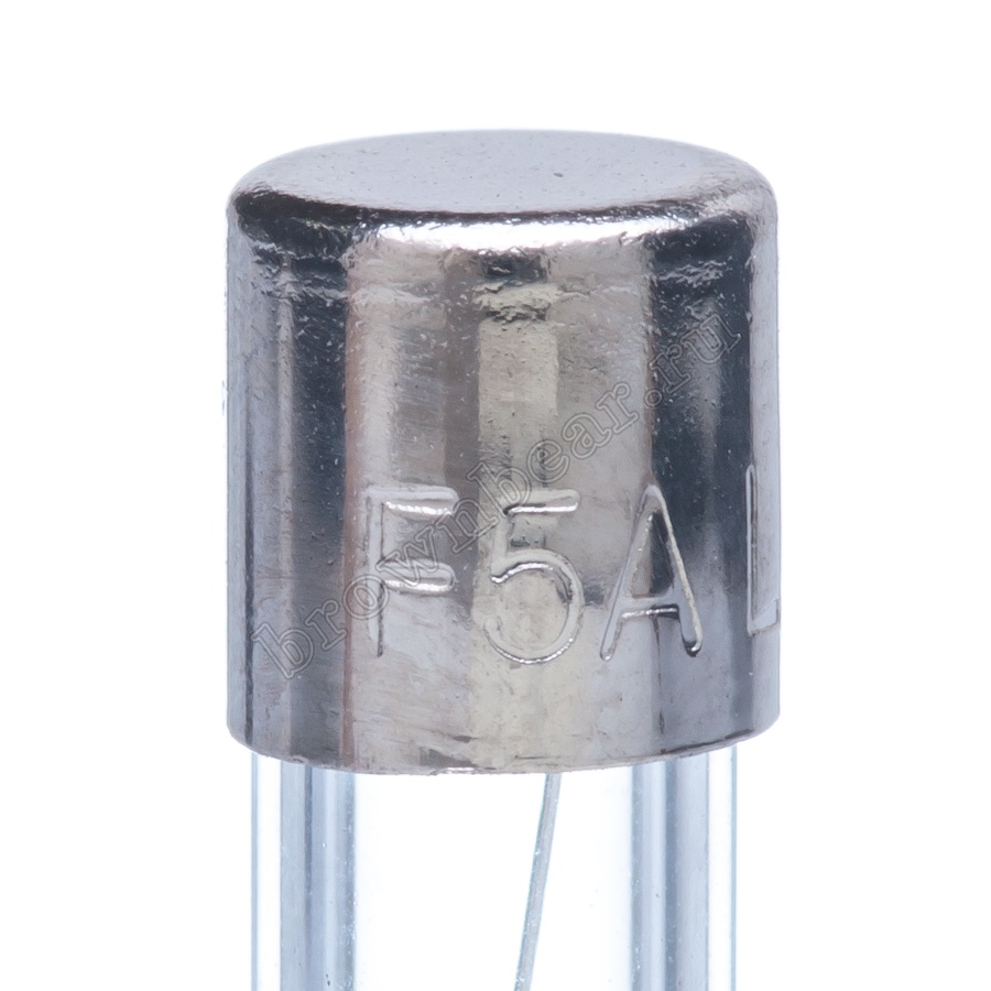 Цилиндрический предохранитель с габаритными размерами 5х20 мм, в стеклянном корпусе, с рабочим током 5А, сверхбыстрое время срабатывания.