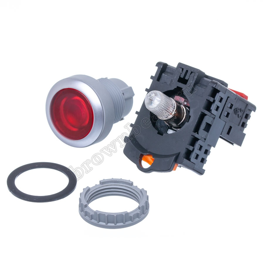 Водонепроницаемая, маслостойкая, пылезащищенная конструкция в собранном виде имеет степень защиты IP65, кроме двойных кнопок и кнопок с подсветкой – у них степень защиты IP40.