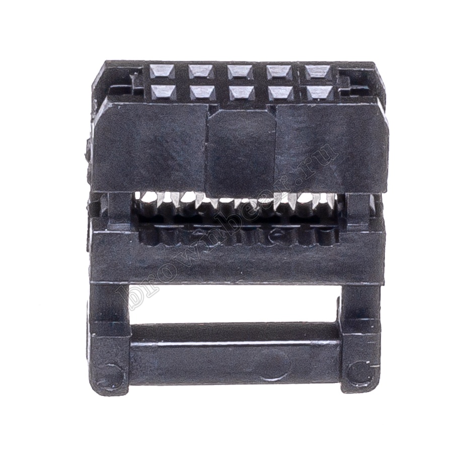 Разъём IDC на шлейф, розетка 10 контактов с шагом 2.00мм. В комплекте поставляется защёлка для дополнительной фиксации плоского кабеля в разъёме.