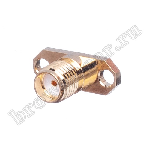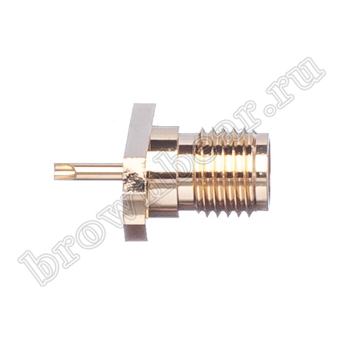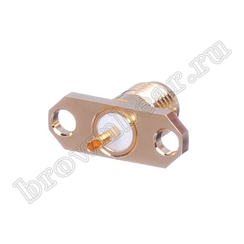 SMA гнездо для крепления на приборной панели при помощи 2-х винтов с гайками. Центральный провод припаивается к центральному контакту разъёма, оплётка присоединяется к фланцу разъёма или корпусу прибора.