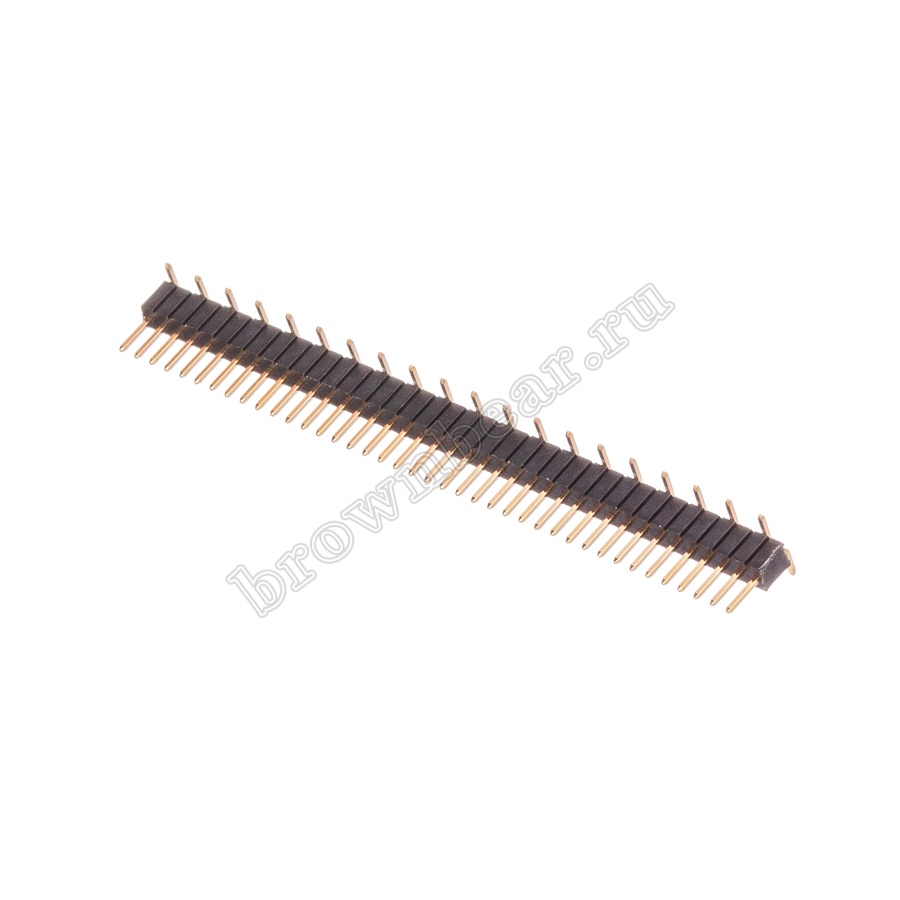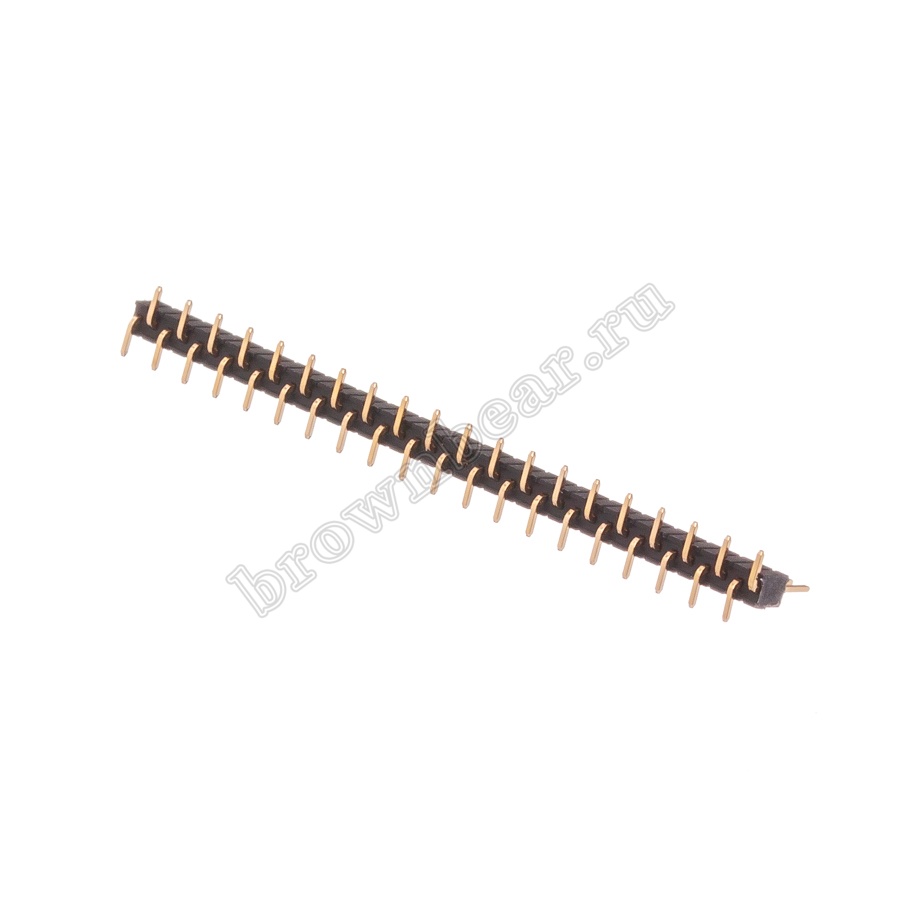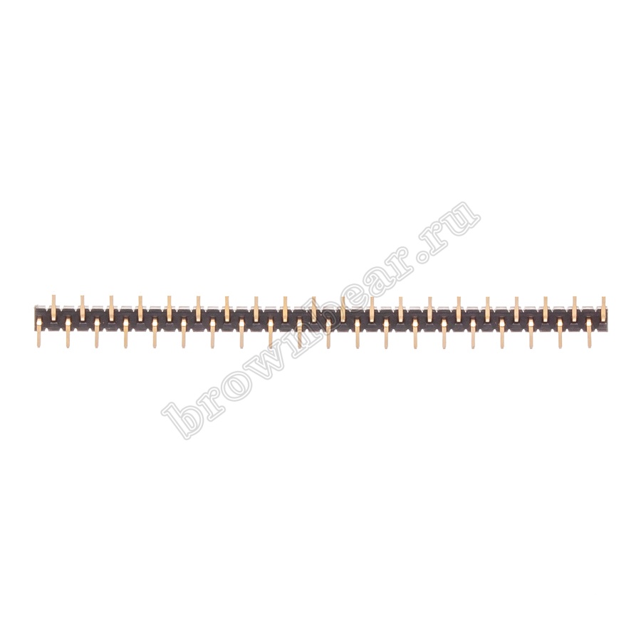 Разъёмы штыревые на плату представляют собой линейку контактов квадратного профиля в один, два или три ряда, проходящие через пластиковый изолятор. Для улучшения токопроводности контакты покрыты золотом. Используются разъёмы штыревые для межплатных соединений и соединений типа плата-кабель, с максимальным рабочим напряжением 200B. Для компактных электронных изделий применяют штыри с шагом 1,27 мм.