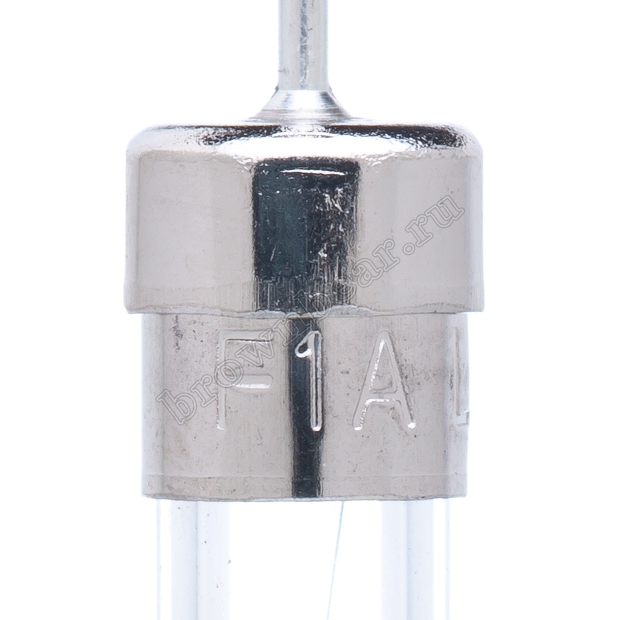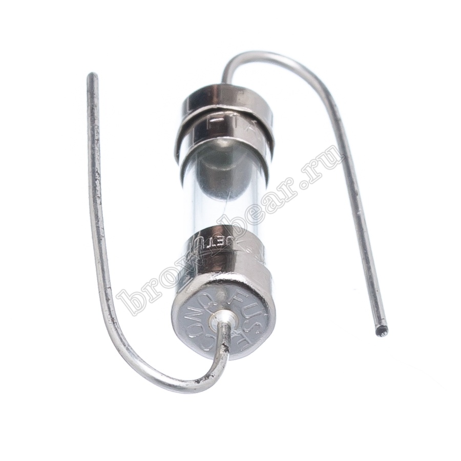 Цилиндрический предохранитель в стеклянном корпусе с выводами под пайку, габаритные размеры предохранителя 5.9х21 мм, длина каждого вывода 38,1мм, рабочий ток 1А, сверхбыстрое время срабатывания. Предохранитель с выводами впаивается в плату и не нуждается в специальном держателе