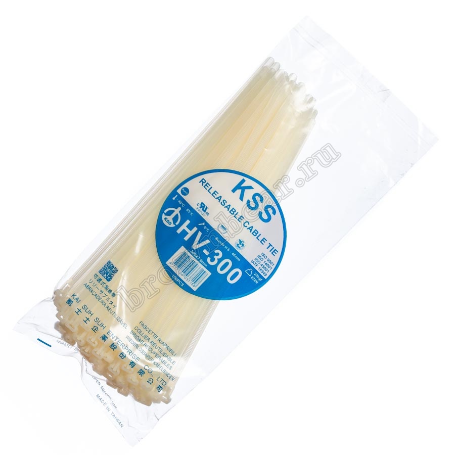 Стяжка (хомут) нейлоновая многоразовая 300 x 7.6 мм, белая, упаковка 100 шт. HV-300-W купить в интернет-магазине «Бурый Медведь»